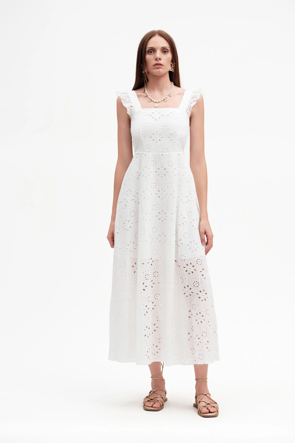 ABITO LUNGO CON BRETELLE PIZZO SANGALLO – DGP8008