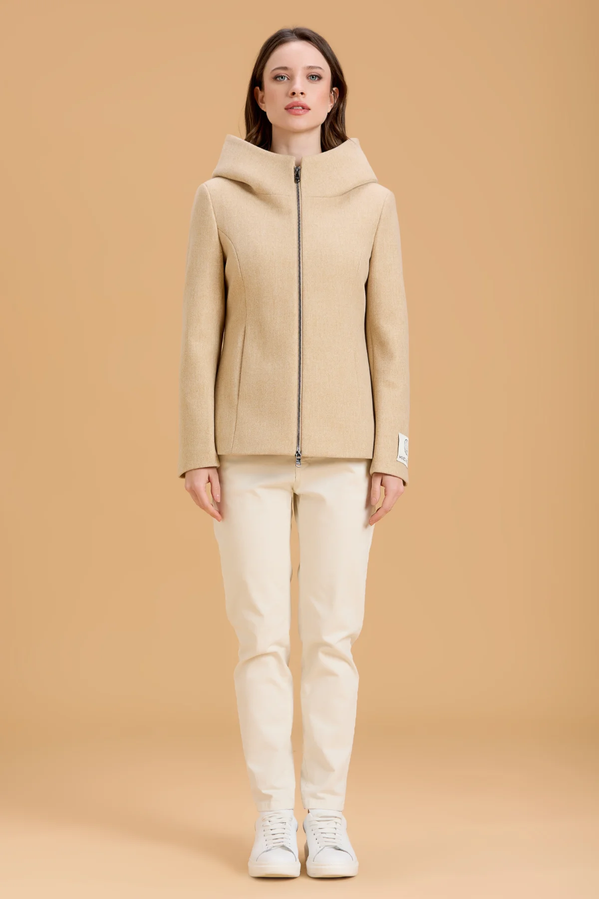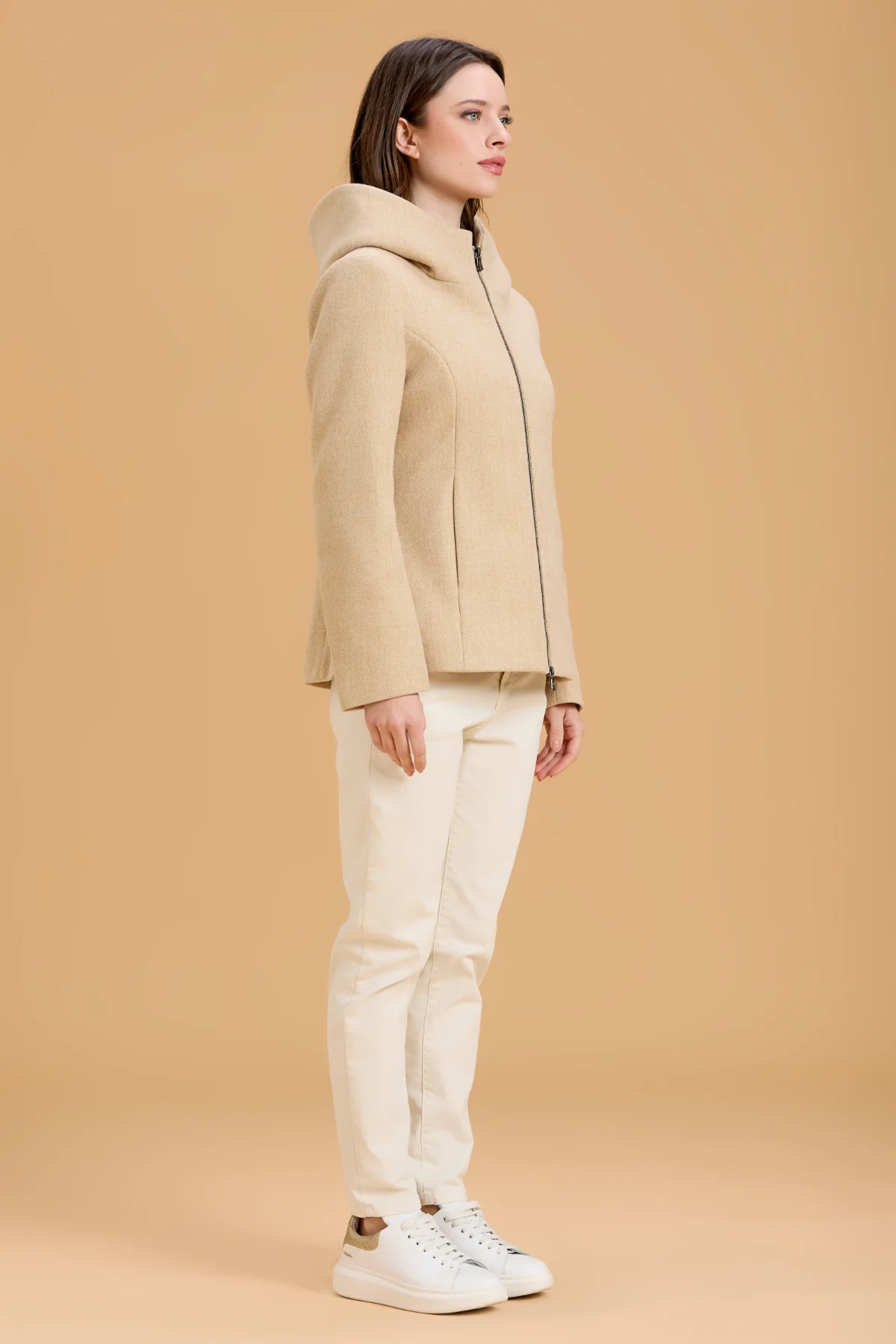 CAPPOTTO CORTO CON ZIP E CAPPUCCIO MISTO LANA – DGF5754
